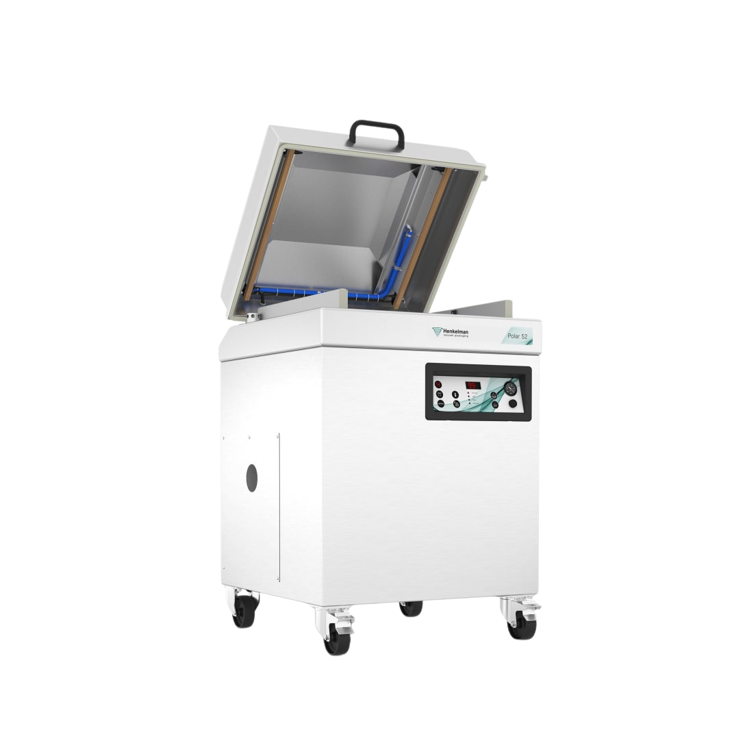 De Henkelman Polar-serie omvat robuuste, volledig roestvrijstalen vacuümmachines, ontworpen voor intensieve, dagelijkse productie.